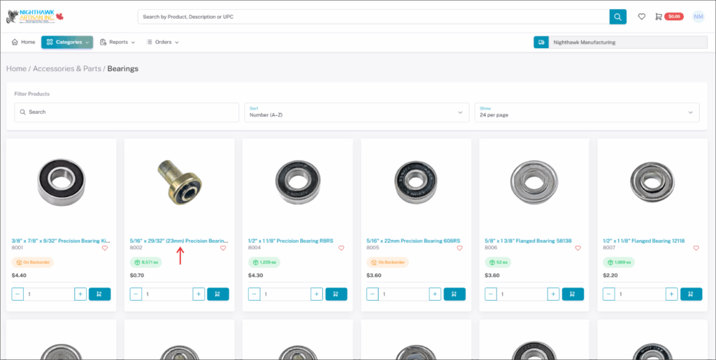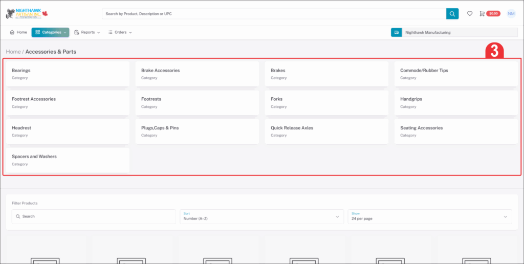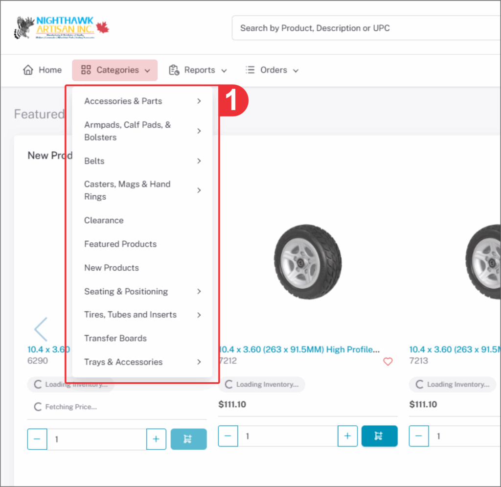 In the left hand side the Categories tab will show all products that are available for purchase online.